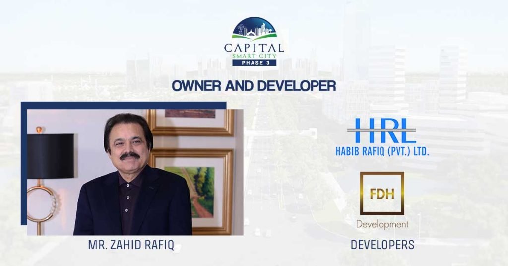 Capital Smart City is a project by Future Development Holdings (FHD), a premier real estate firm specializing in smart urban developments, in collaboration with Habib Rafiq Pvt. Ltd. (HRL)—a name trusted for delivering high-quality projects like Bahria Town and DHA in Islamabad. While FHD focuses on building luxurious and sustainable communities, HRL contributes decades of experience in executing large-scale infrastructure and residential projects.